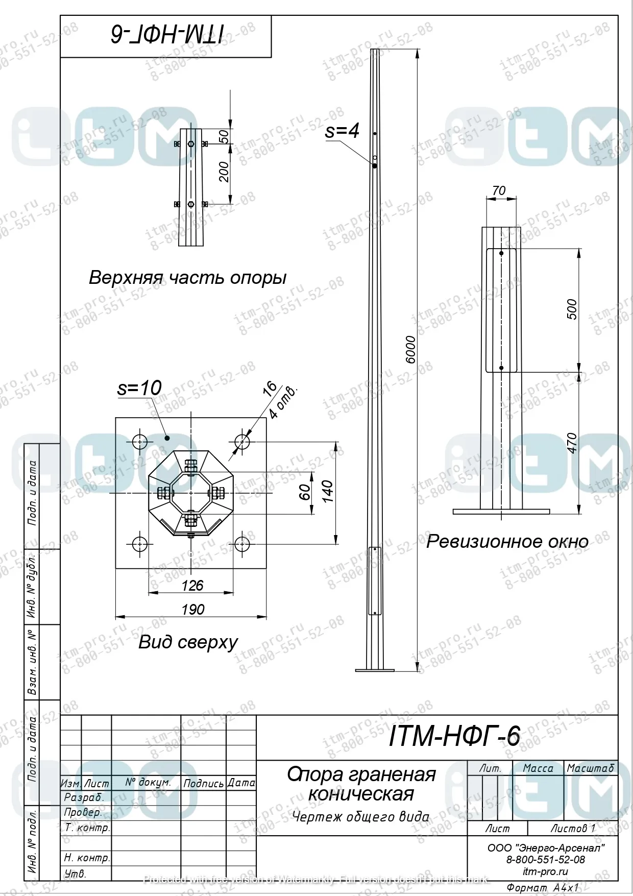 Для производства опор НФГ предприятие Энерго-Арсенал используют листовую сталь толщиной 4 мм. Опоры освещения изготавливаются на производстве предприятия, расположенном в городе Екатеринбург, под собственной торговой маркой ITM.